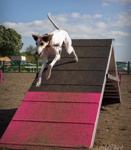 Dahari absolutely loves her agilty and began competing in 2023. she has won several rosettes in beginers classes and we are taking the opportunity at A4A shows to run NFC to train her contacts and weaves in the competition envirionment. Dahari works all equiptment confidently and we cant wait to see her progress her agility!