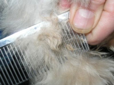 A knot occurs where the coat is slightly tangled but it can be removed by careful brushing or combing out. Matts are formed when dead, loose undercoat hair becomes trapped by the top or guard hair, and starts to clump and twist together. If this matted coat becomes wet, the matting tightens and becomes almost solid. Do not attempt to remove matts unless trained in the procedure. Otherwise, refer to a professional groomer.